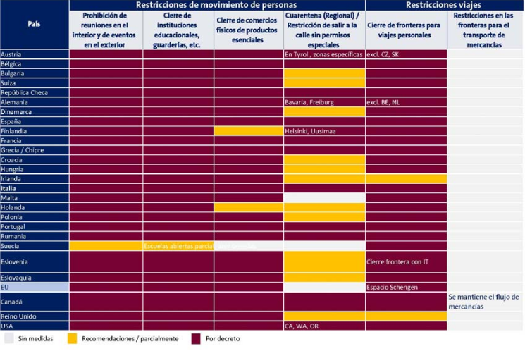 En la tabla adjunta encontraréis información actualizada relacionada con las restricciones vigentes en los diversos países de la red GLS. Son medidas de carácter temporal relacionadas con el brote de COVID-19